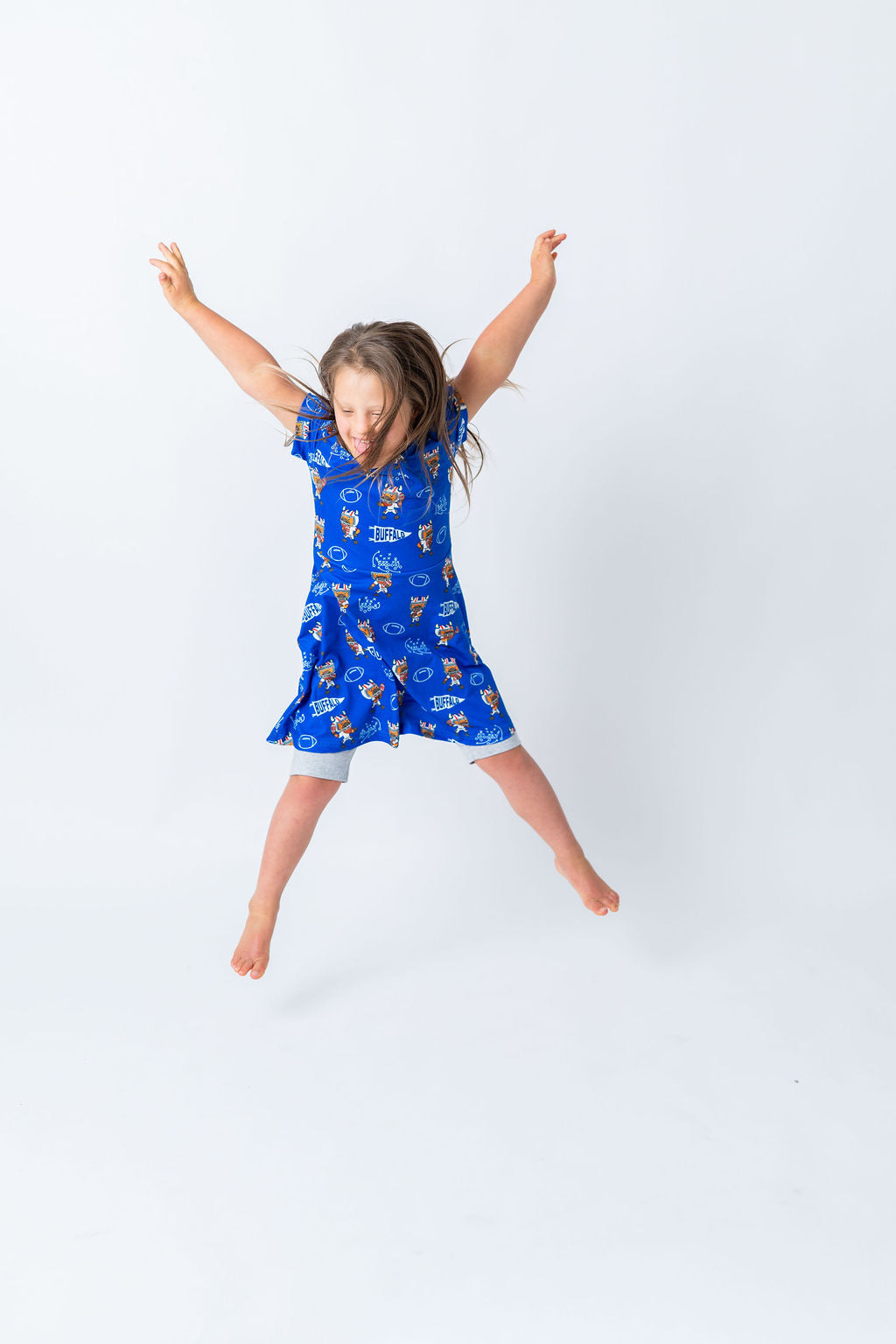 Get ready to score major style points with our brand new Buffalo Quarterback Dresses! Featuring an adorably tough little quarterback charging down the field, these dresses are perfect for game day, play day, or any day you want to show off your Buffalo pride.