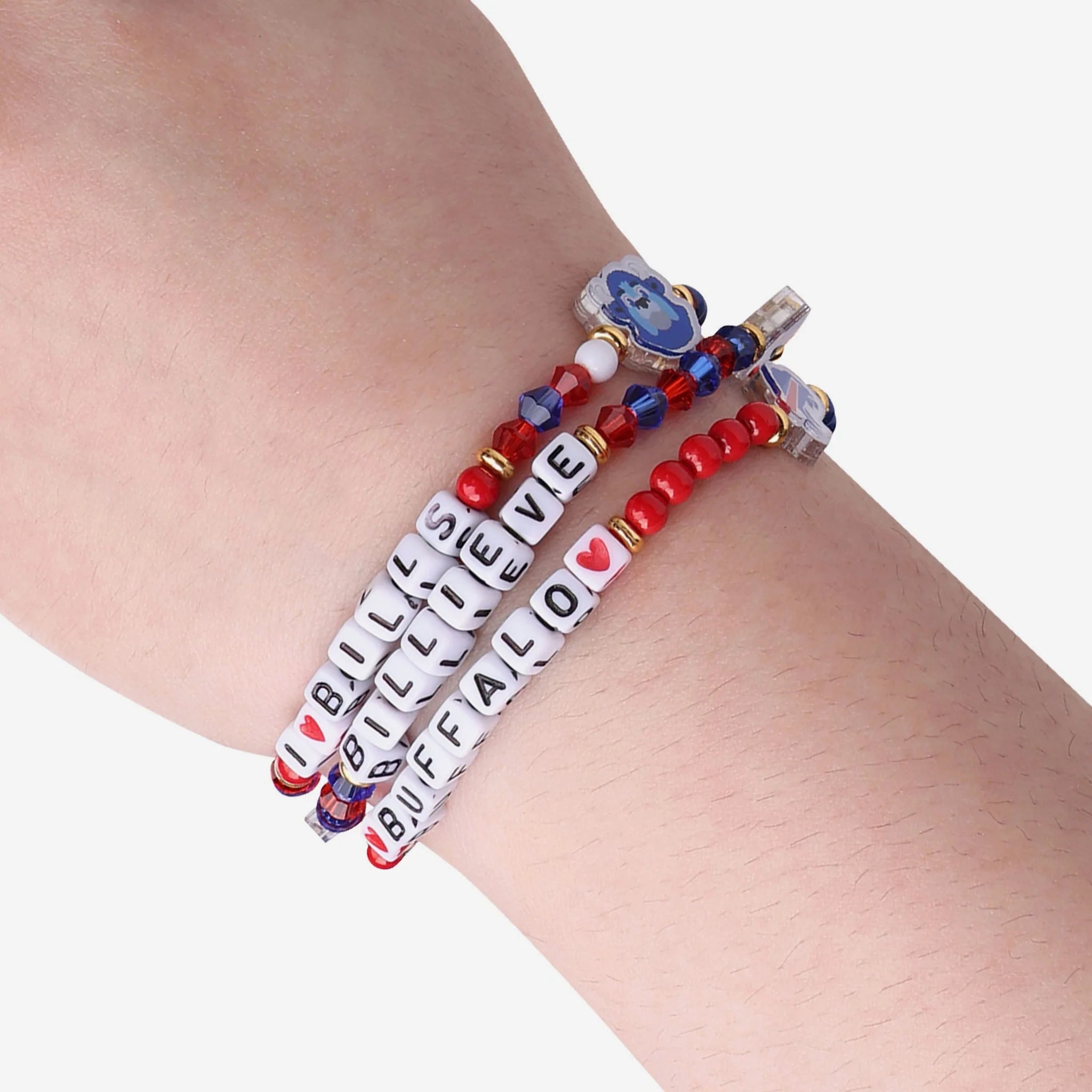 Accessorize and maximize your fandom while impressing your fellow fans with these officially licensed Buffalo Bills 3 Pack Friendship Bracelets. These matching friendship bracelets have an all-over team-colored design and team logo displays, which makes them the perfect way to show your support for the Buffalo Bills and get in on the latest accessory craze. Circumference: Approximately 7.5 in.