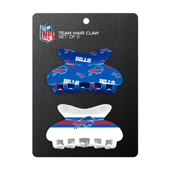 Show off your Bills pride with this playful set of two officially licensed NFL Buffalo Bills Hair Claw Clips. Measuring 4" × 3", each clip is crafted from durable, lightweight PVC and features a sturdy metal spring to hold thick, thin, curly, or straight hair securely—perfect for rocking ponytails or messy buns with some serious Bills Mafia flair! Comes in a convenient 2-pack!