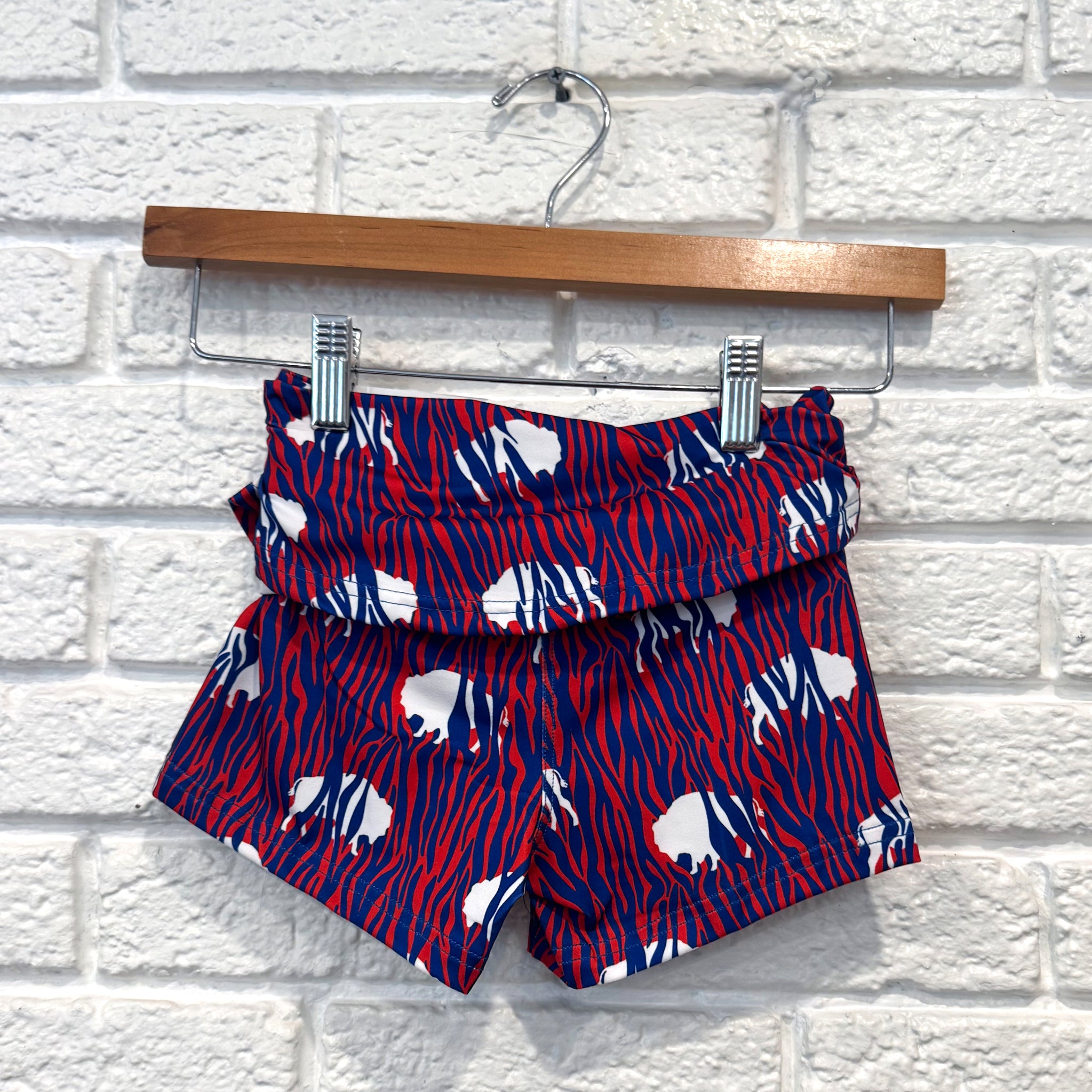 Bring some bold Buffalo spirit to your game-day look with our Red & Blue Zebra Buffalo Skort! Featuring a fun twist on classic stripes, this skort combines red and blue zebra print with our signature buffalo design for a look that’s fierce, playful, and full of hometown pride. Comfortable, flattering, and eye-catching, it’s perfect for cheering on your team, running errands, or making everyday feel like game day.